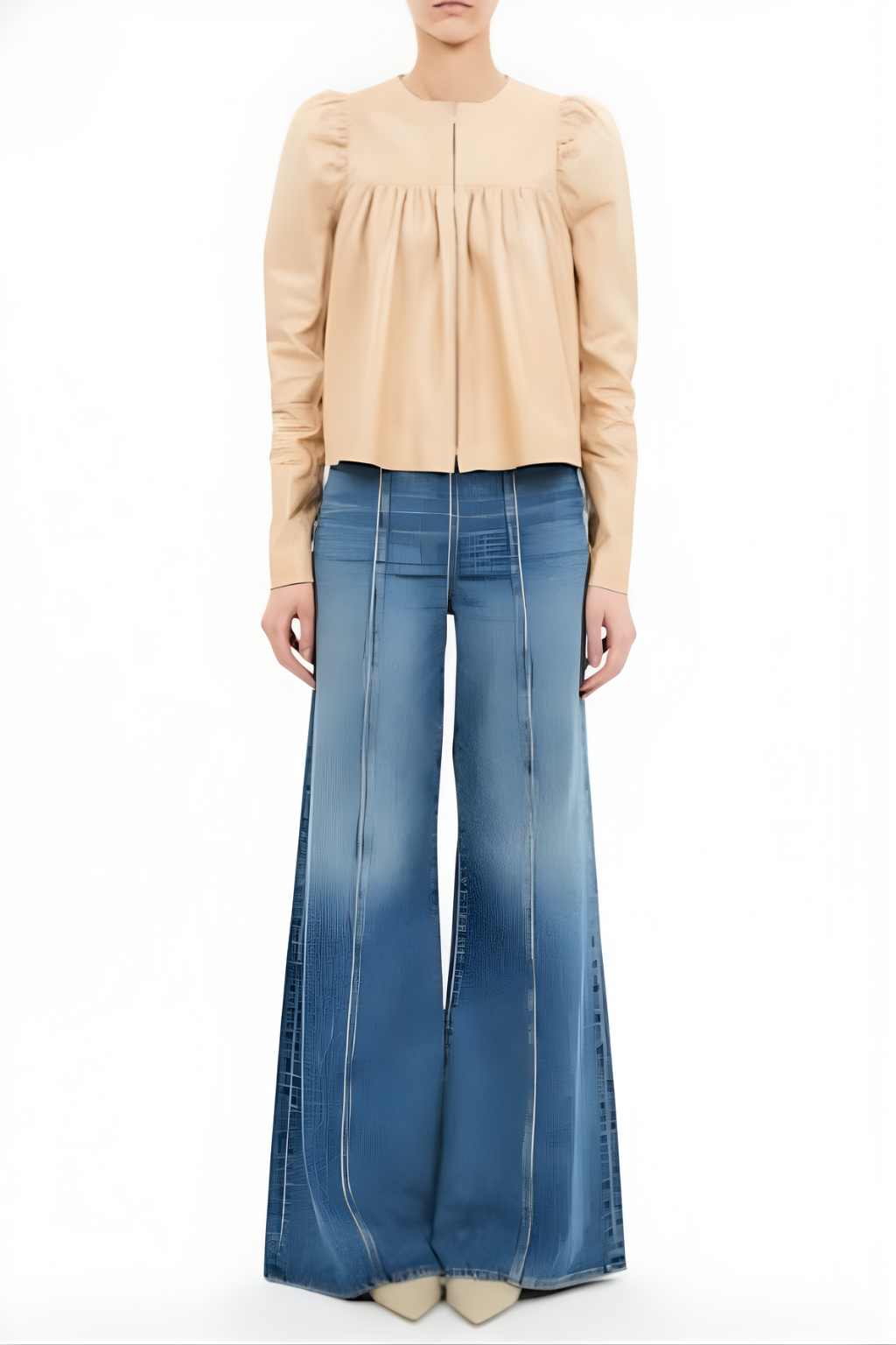 The Anouk Jacket is expertly tailored from leather with subtle paneling and gathers for elegant structure. Framed by signature puff sleeves with zipped cuffs, this wardrobe heroine has a clean, collarless neckline and arrives in a creamy beige for endless versatility. Designed for a voluminous, slightly cropped fit. Lined.