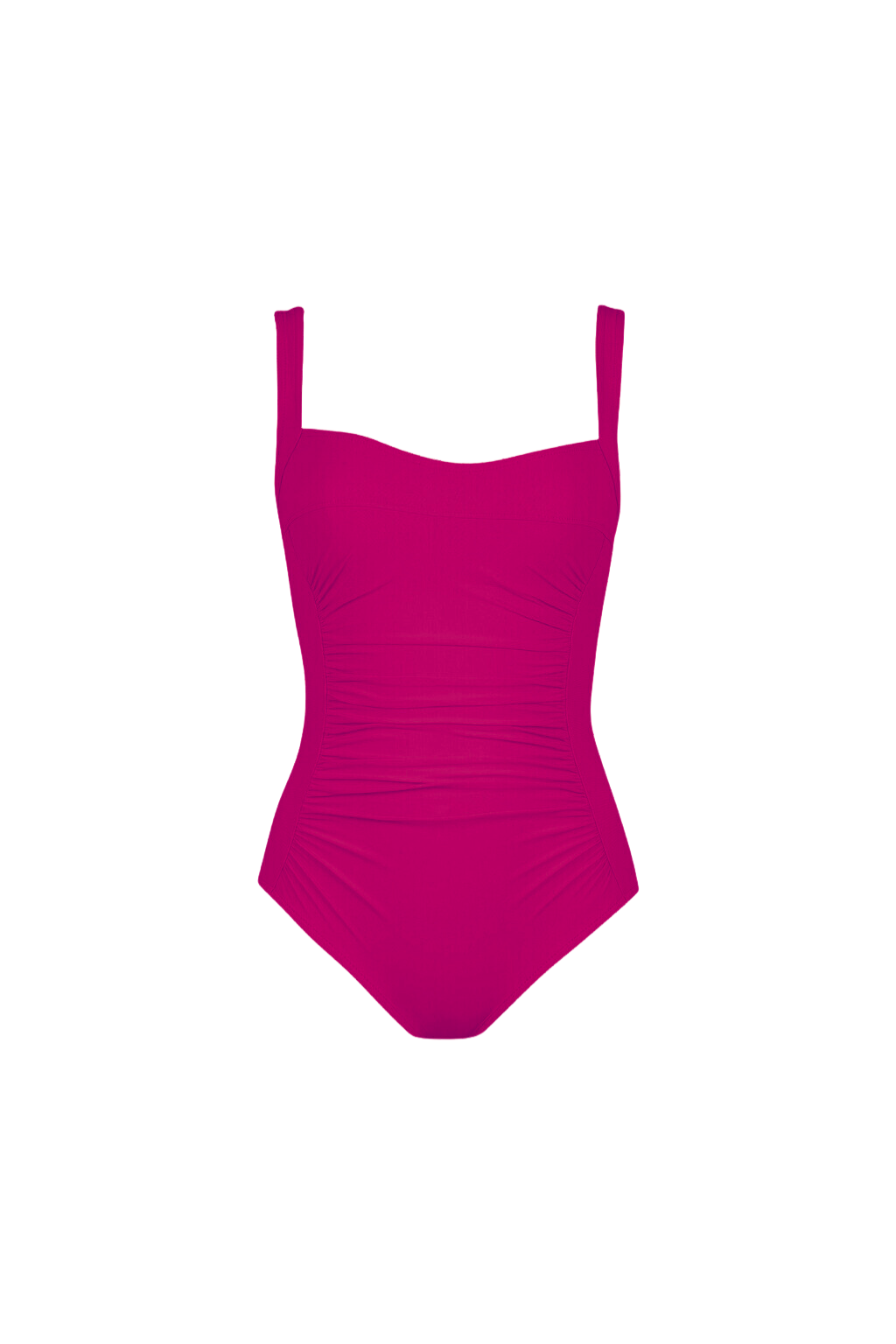 Thoughtfully placed ruching and a subtly shaped neckline define this figure-sculpting one-piece fit for a coastal getaway. Color available is WHITE