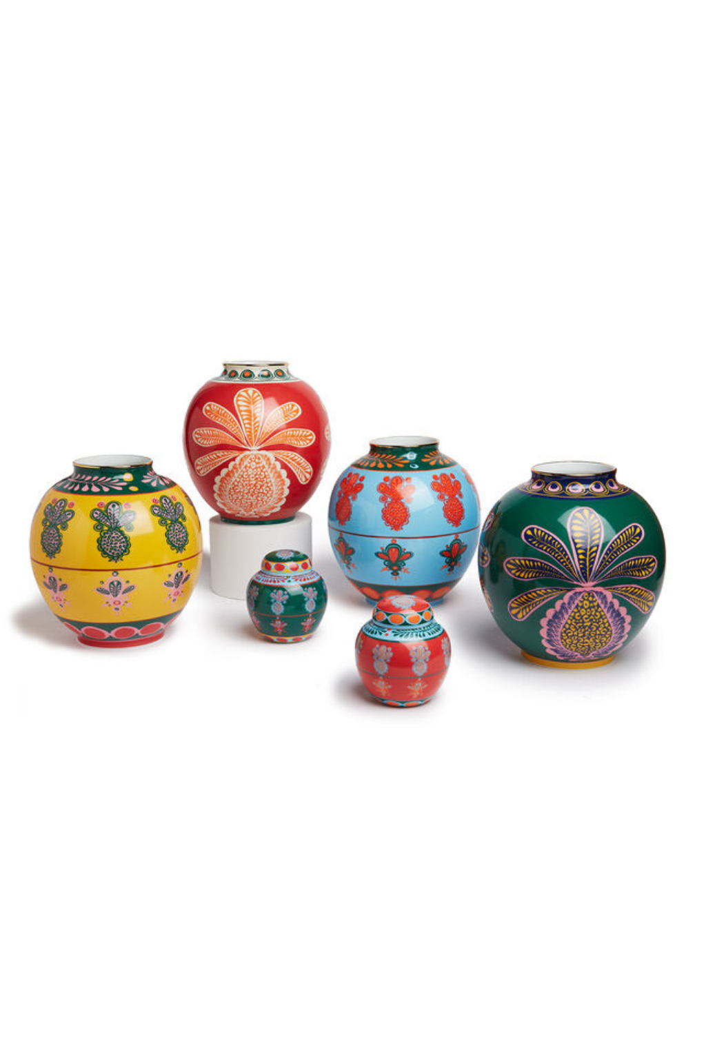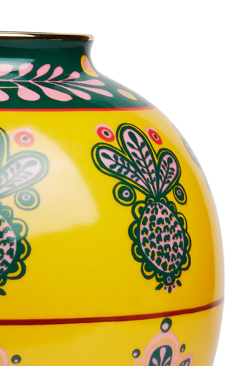 Historic Verona-based porcelain maker Ancap were the masters behind this exquisitely printed porcelain vase, which features 18K gold trim, contrast decorative lining and supersaturated colors. The Pineapple Giallo print takes centre stage in this masterpiece with details hand-painted by the most kick ass artisan hands.