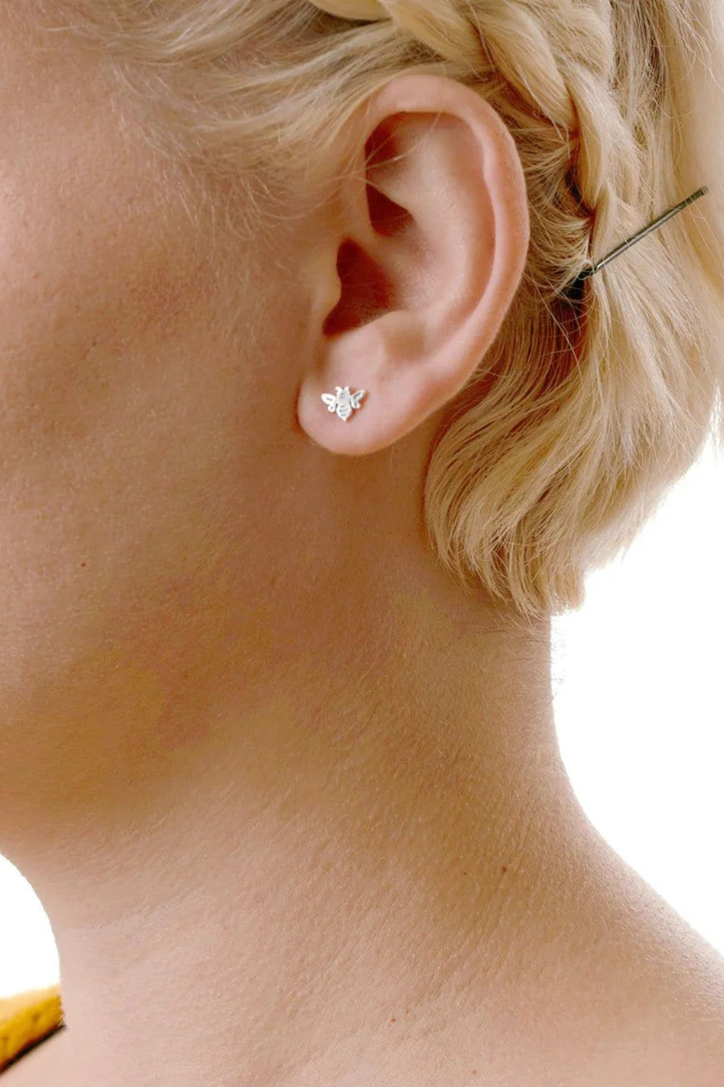 Bumble bee stud earrings measure approximately 10mm wide. Available in gold vermeil (solid sterling silver with 18K gold plating).