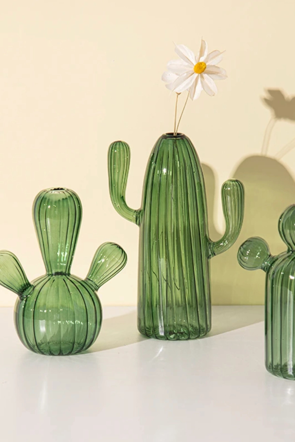 This unique and charming vase brings a touch of nature indoors, allowing you to display your favorite blooms in a stylish and modern way. Crafted from high-quality glass, the cactus-shaped design adds a playful and eye-catching element to any room.