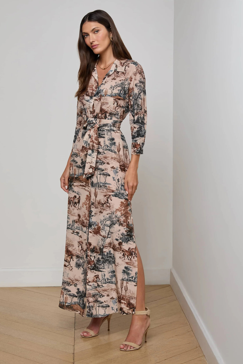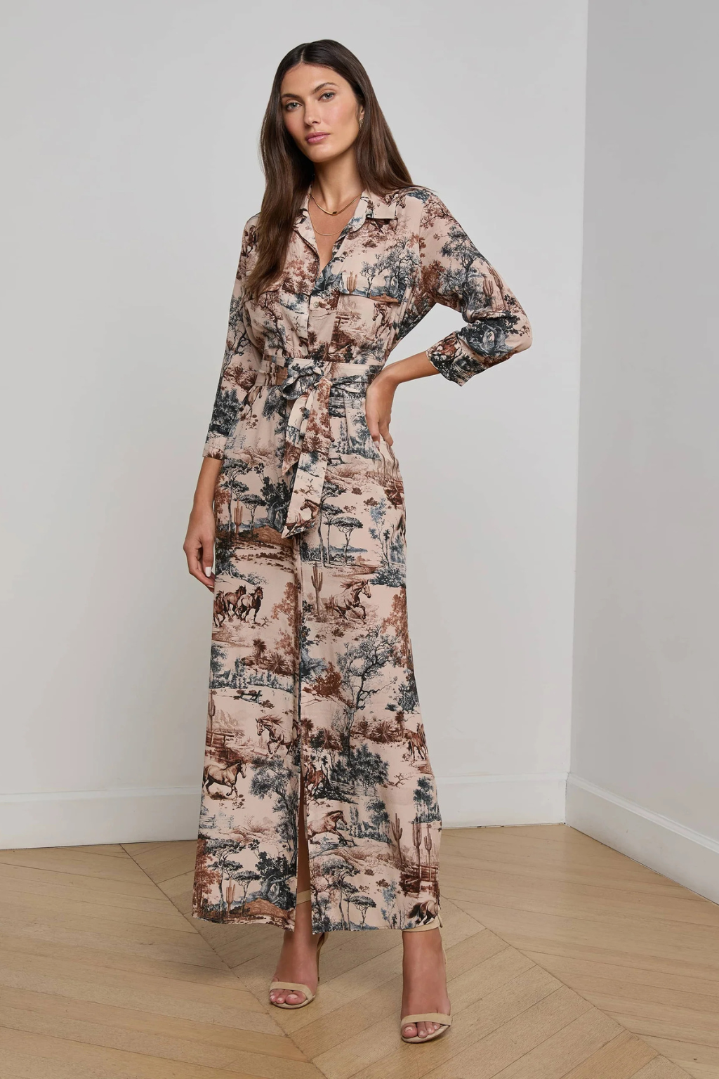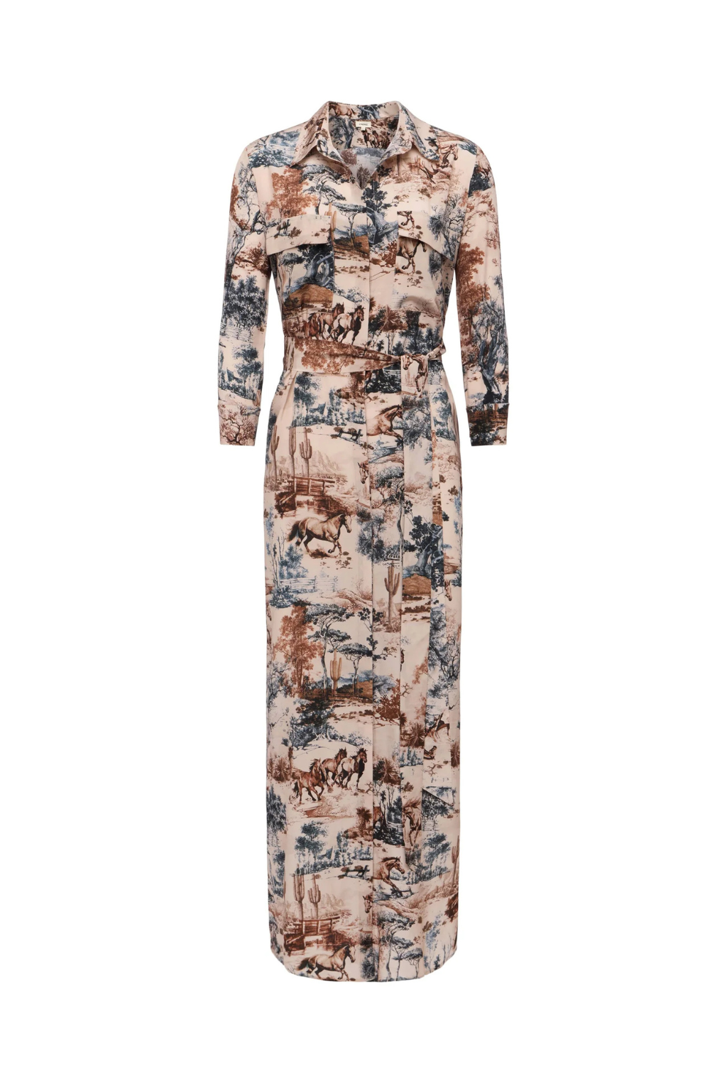 Deep side slits encourage dramatic movement on our all-time bestselling silk shirt dress, now back in an eye-catching Western toile print. Wear the Cameron on its own or as a duster with jeans and a camisole.