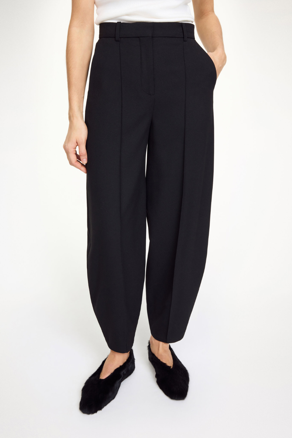 Office wear made easy – that’s the definition of the Charlie trousers. Set on a high waist and with classic tailored details, the design falls to a barrel leg that makes for a contemporary take on suiting.