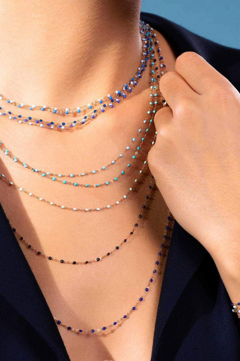 This necklace is crafted in 18 carat rose gold with a rainbow of colored bead choices. Wear alone or to stack depending on your mood, state of mind or special occasion! Add a Gigi Pendant to personalize. Chain is 16.5" long. Jewelry is final sale.