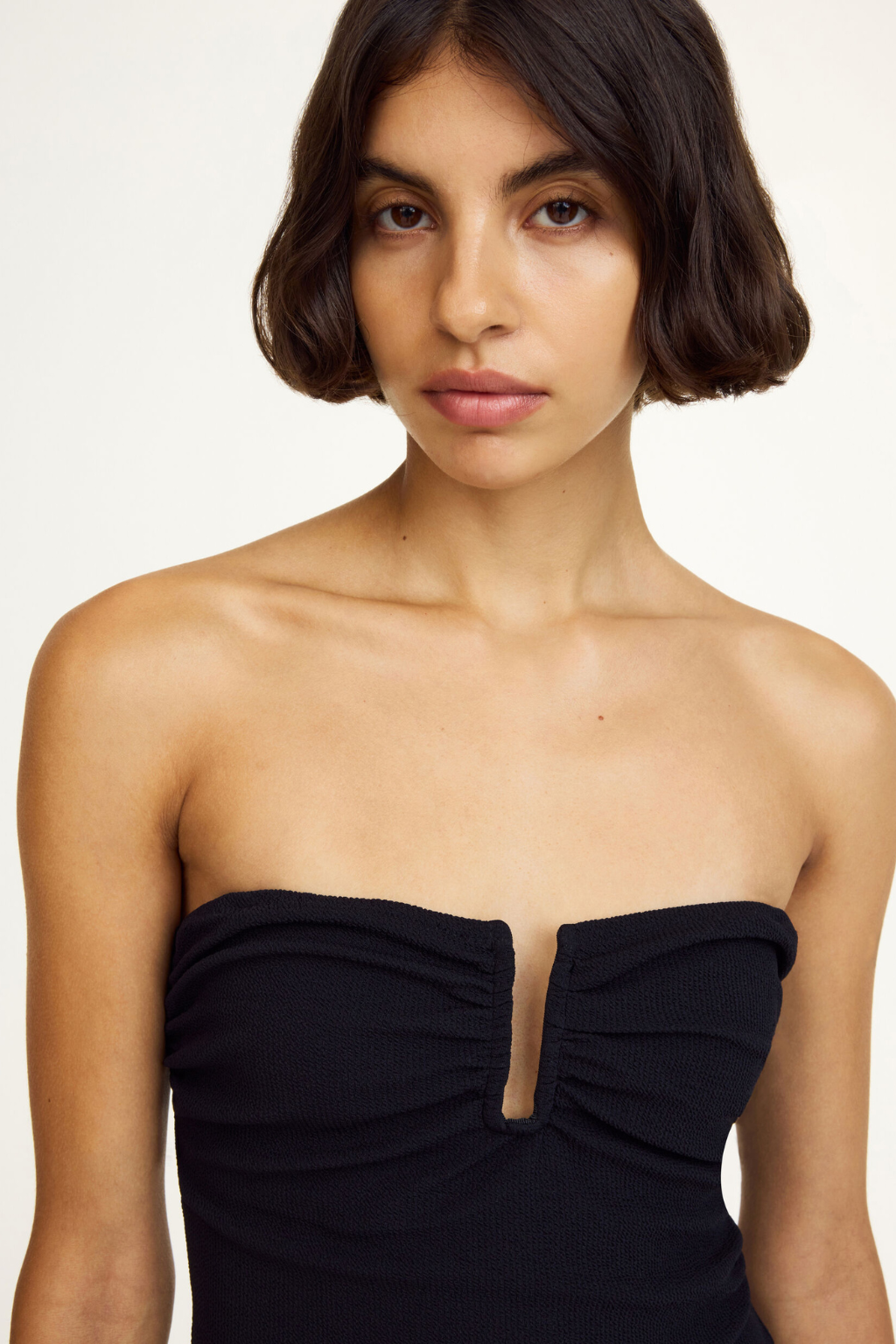 For uncomplicated lounging by the pool or the seaside, opt for the tactile Cocesa swimsuit. The minimalist design has a distinct cut-out neckline, high-cut legs and adjustable straps that are easily taken on and off, depending on your mood. Its finest detail? The small, embroidered monogram on its front.
