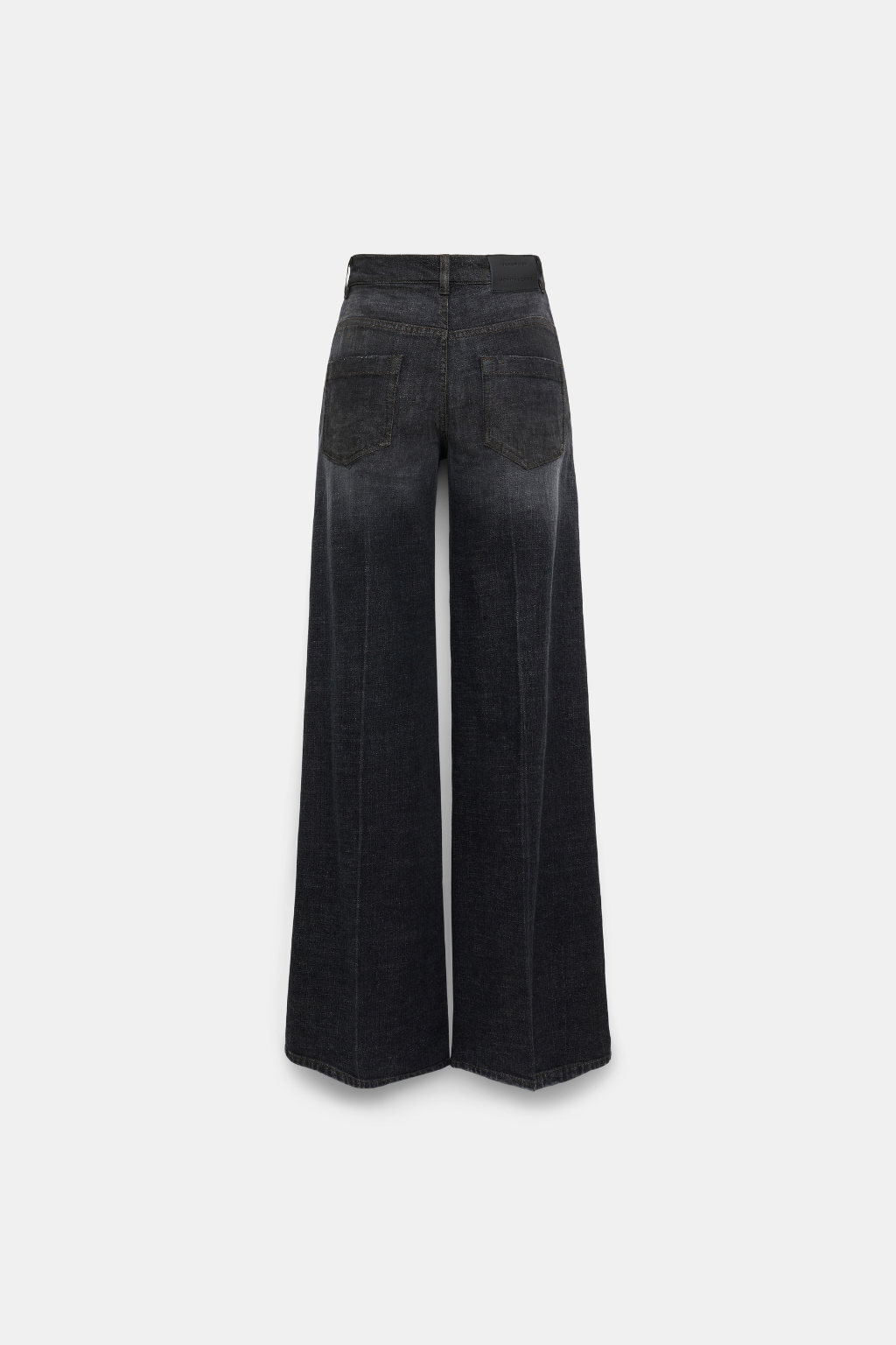 Long, wide leg jeans. Denim for days: The dark wash jeans have full length, wide legs and classic 5-pocket detailing.