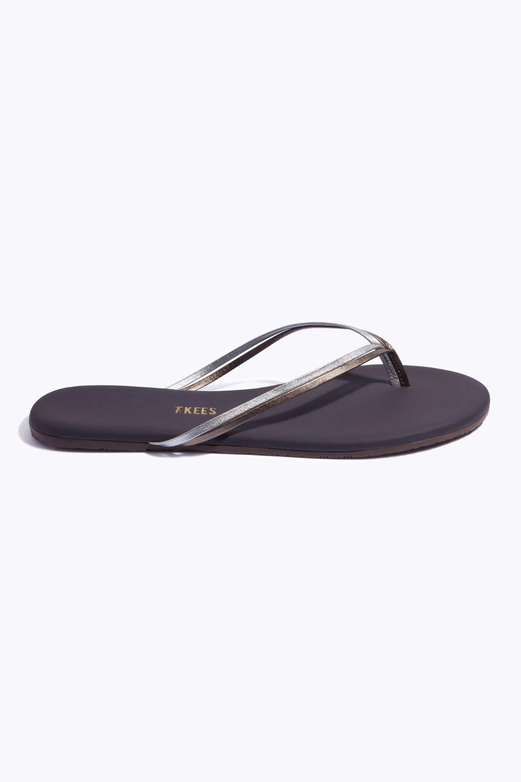 T Kees classic silhouette finished with two delicate contrasting straps, their most dainty design. Feel your most polished and confident in this glamorous metallic look.