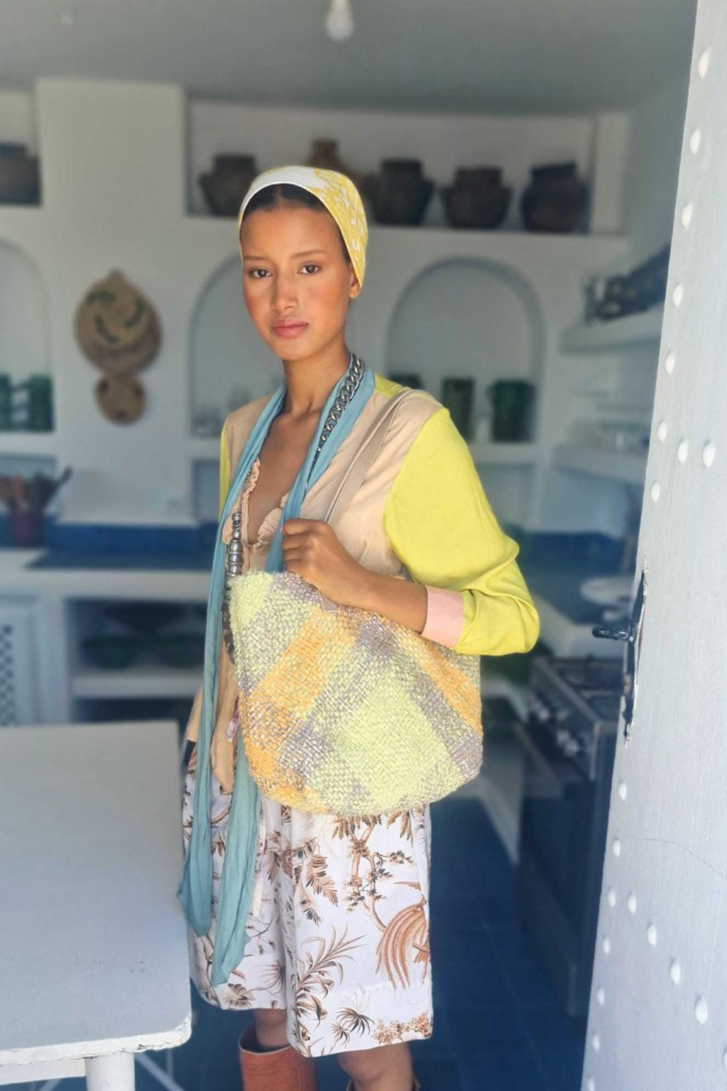 This tote is handwoven in multicolored facric strips with a striped canvas interior. It features sturdy leather straps  and a lined interior. Inside, you'll find a slotted accessories pocket, zip pocket, and magnetic snap closure. Perfect for all your essentials while making a splash.