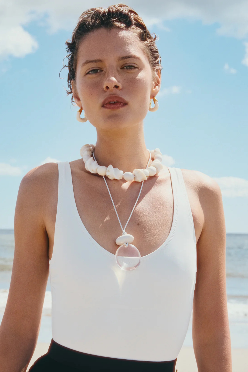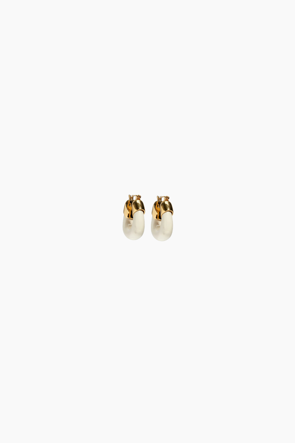 Make it mini! The iconic, best-selling hoop earrings just got even more wearable, with a slightly smaller drop to suit any style situation. In gold-plated brass and opaque, alabaster-colored resin..