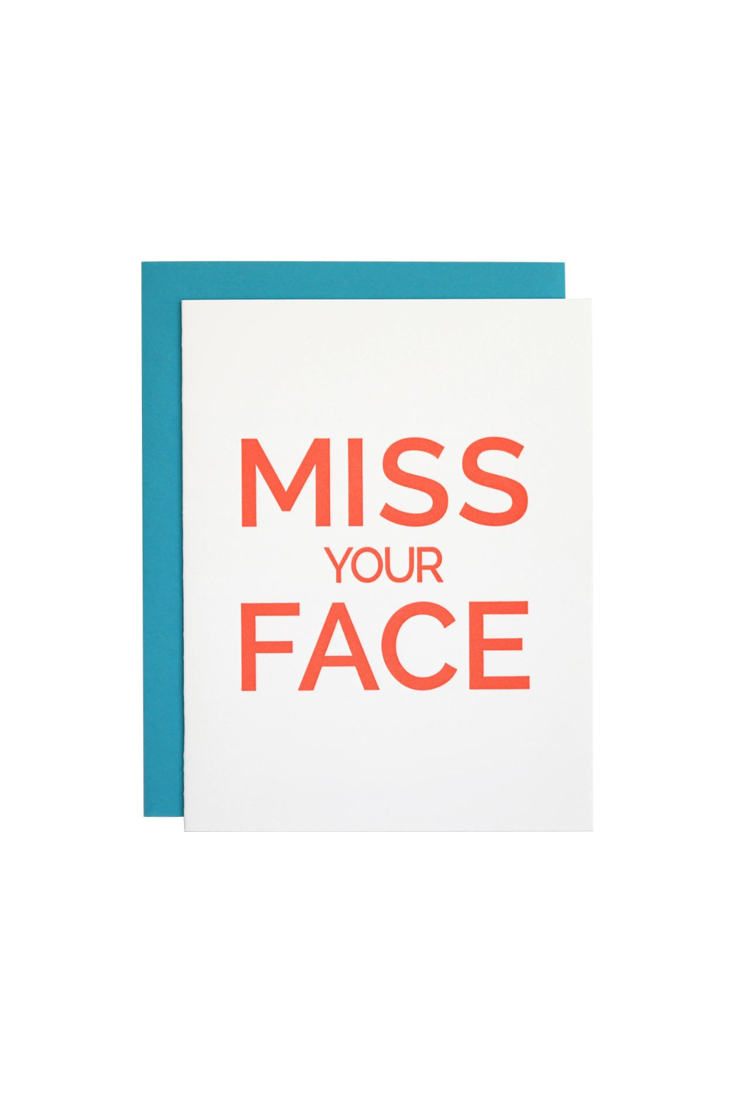 The "Miss Your Face: Card is letterpress printed on a vintage printing press.