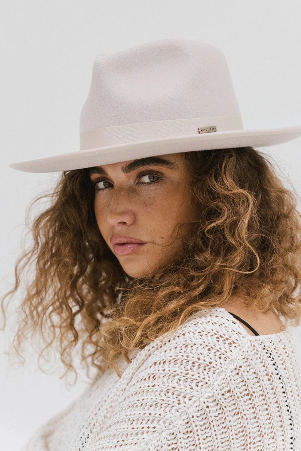 The Monroe Rancher felt fedora hat is a bestseller for good reason, this quintessential wool fedora hat stands the test of time making it the perfect staple in any wardrobe. The Monroe Rancher is a hat with a teardrop shaped crown, stiff upturned brim, and is paired with a tonal grosgrain band. These beautiful combinations make this felt fedora hat a classic.