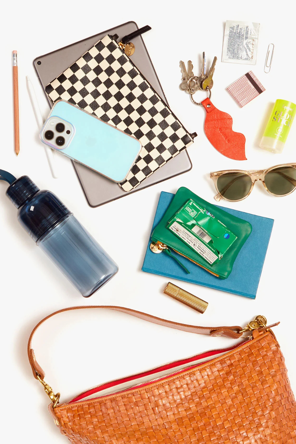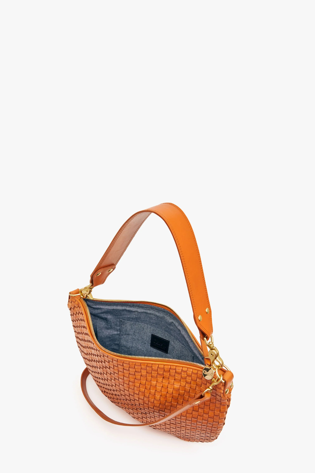 The one and only zip-top crescent bag with generous capacity for holding your iPad, water bottle, sunnies, with one interior pocket for added organization and two ways to carry - a 36.5 inch crossbody strap & 21 inch shoulder strap. The Moyen Messenger is made of handwoven leather with chambray lining, a matching zipper and one interior pocket.