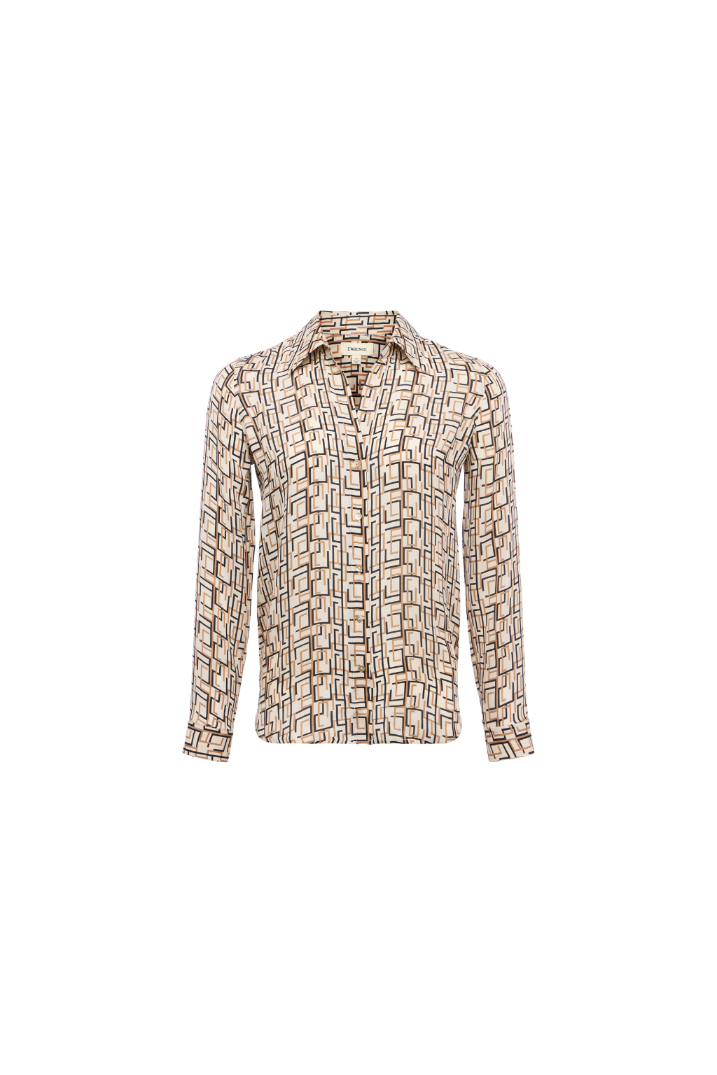 L'agence's classic long-sleeve silk button down. This relaxed fit essential with a front button blusore and shirttail hem is now back in a neutral geometric print.