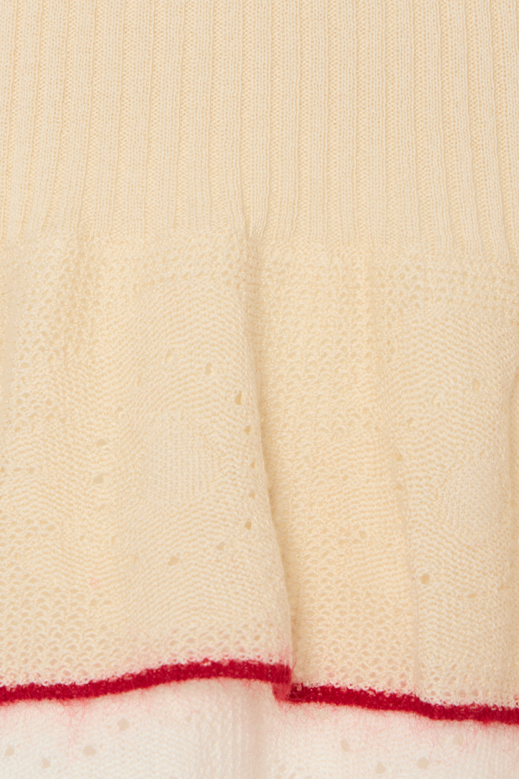 A sophisticated spin on the spring sweater, this ribbed knit tee arrives with romantic peplum ruches along the cuffs and hem, and a contrast color lace trim to give a little extra Italian flair. Wear it with a skirts or your favourite denim for an effortlessly elegant 9-5 look.