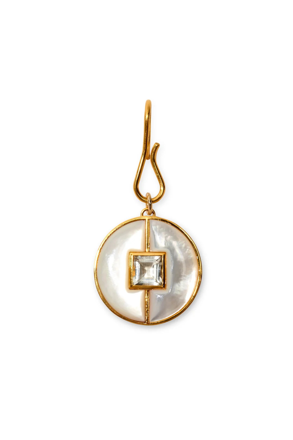 LF is thrilled to roll out their signature gold-plated Porto Pendant once again. With bisected mother-of-pearl stones and faceted green amethyst detail. Sold with the Long Venice Chain.