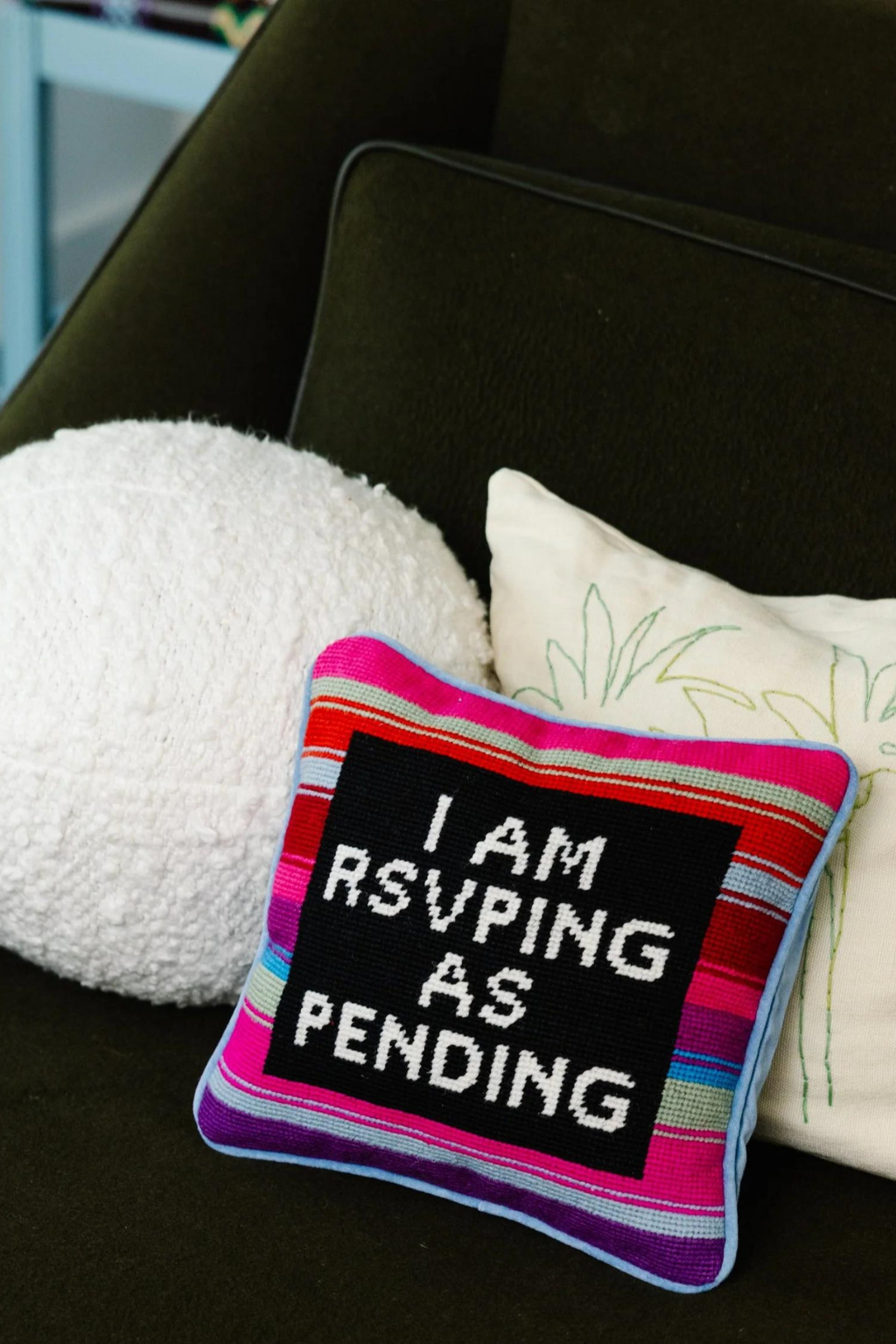 Make a statement with this charming-meets-chic needlepoint pillow. Embroidered and backed in light blue velvet, we've revived this Southern staple with sayings that are sure to get a smile. They are guaranteed to spark joy and make the perfect gift!