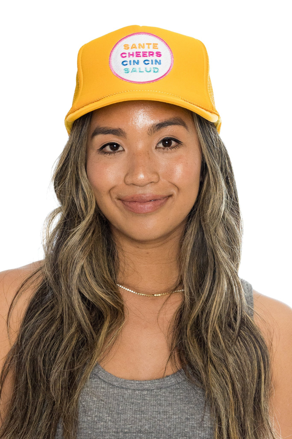 Find your 'Friday Happy' no matter what day it is! A hat to look and feel good in! A comfortable foam front, mesh back, high crown trucker hat featuring an adjustable snap-back.