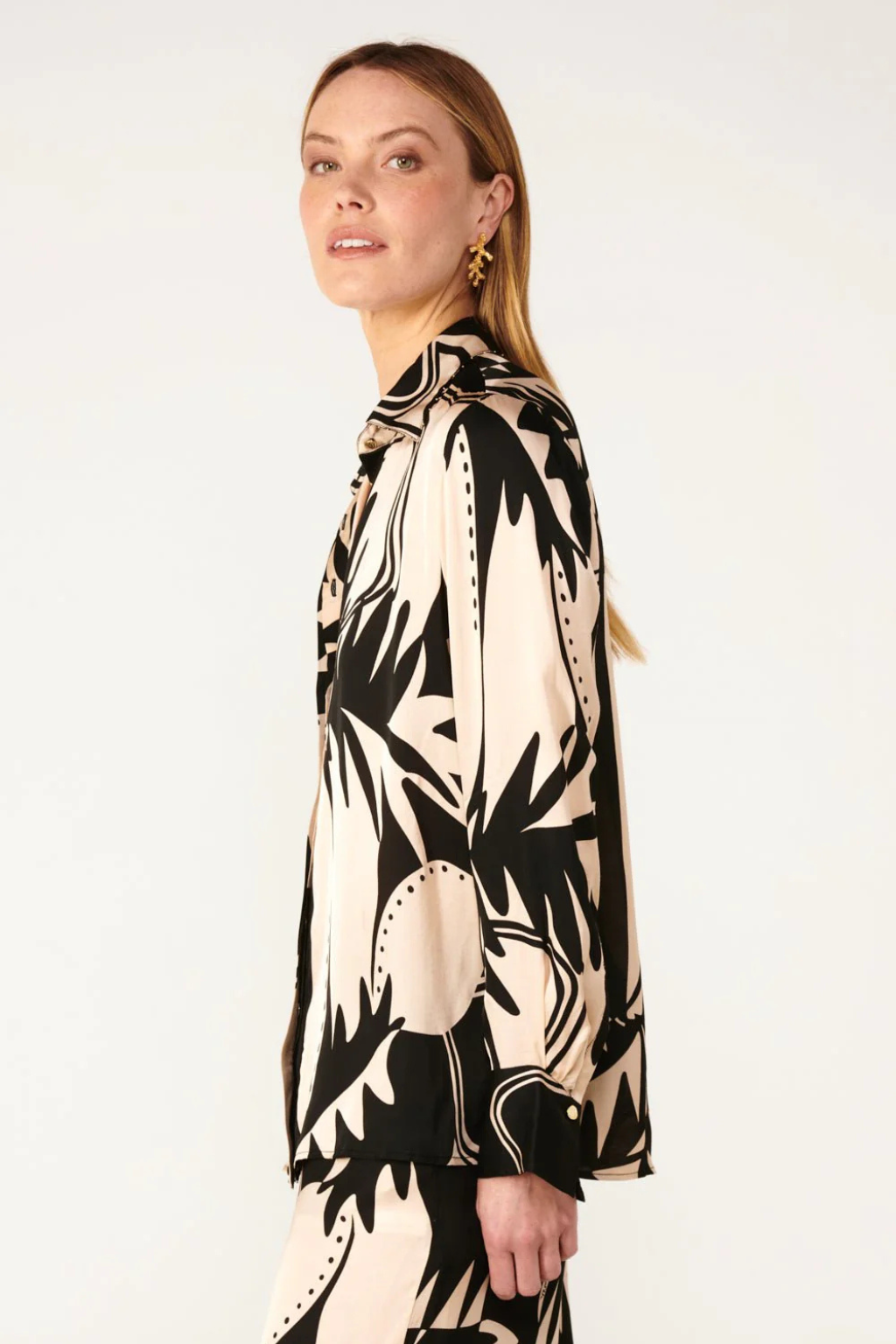 Long sleeve shirt in viscose satin with a classic collar with bead embellishment.