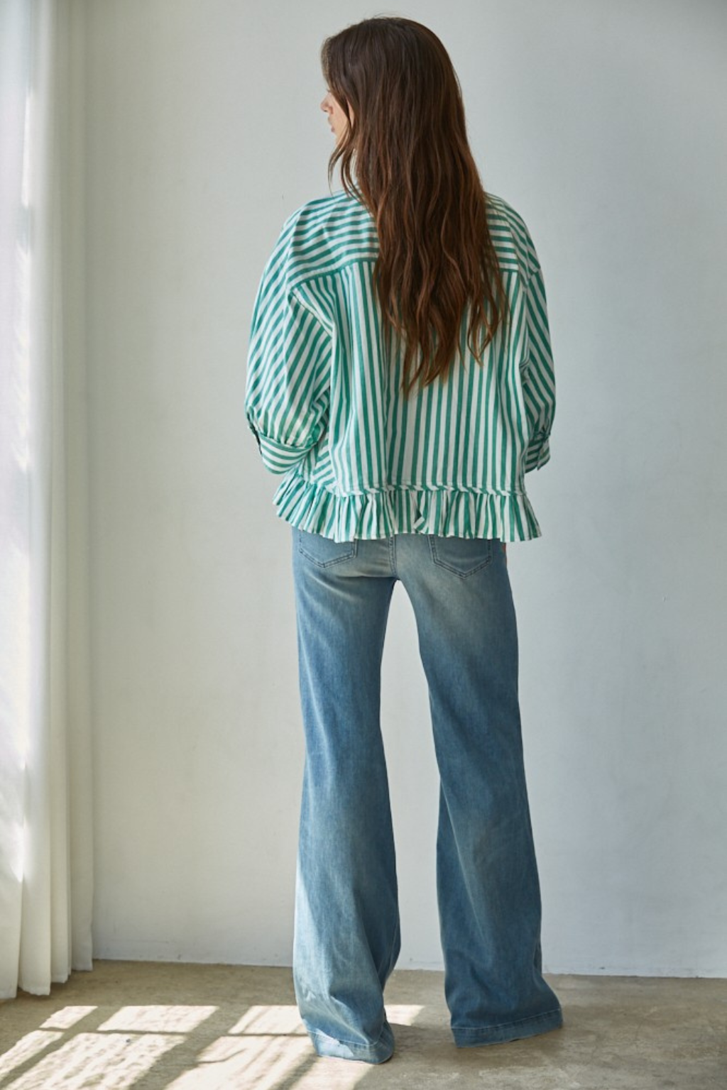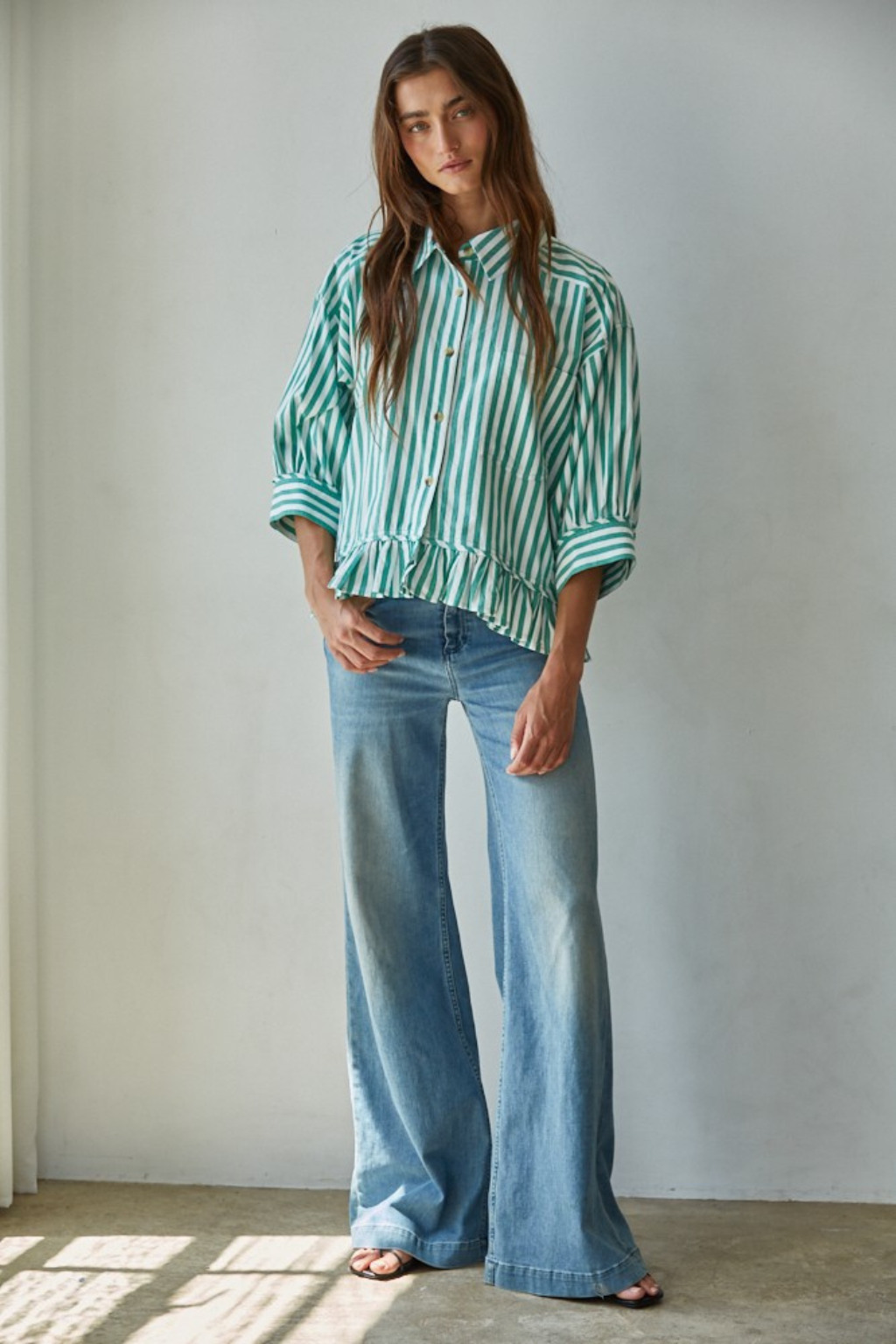 Striped Button Down Top with Ruffle Hem