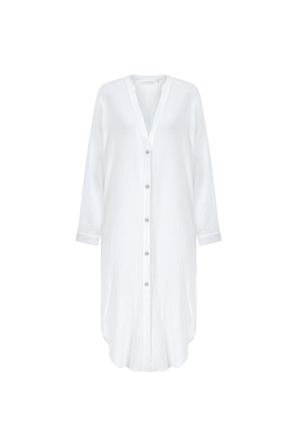 The Terra Shirt Dress, is the trans-seasonal statement your wardrobe’s been waiting for. The Terra brings classic shirting to the beach with a relaxed body and soft billow through the sleeves crafted in a semi sheer light cotton, with an airy flow and pearl shell buttons.