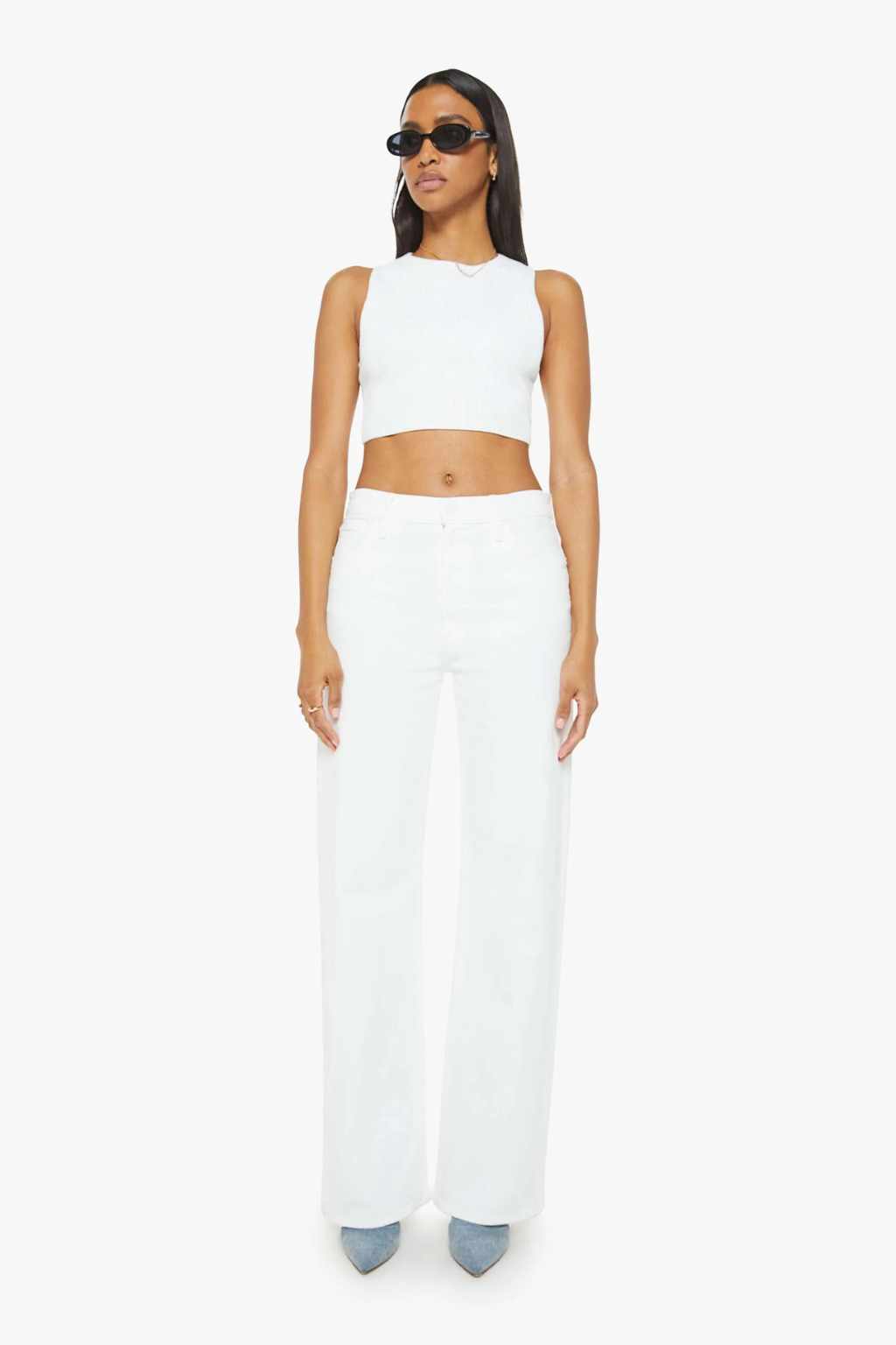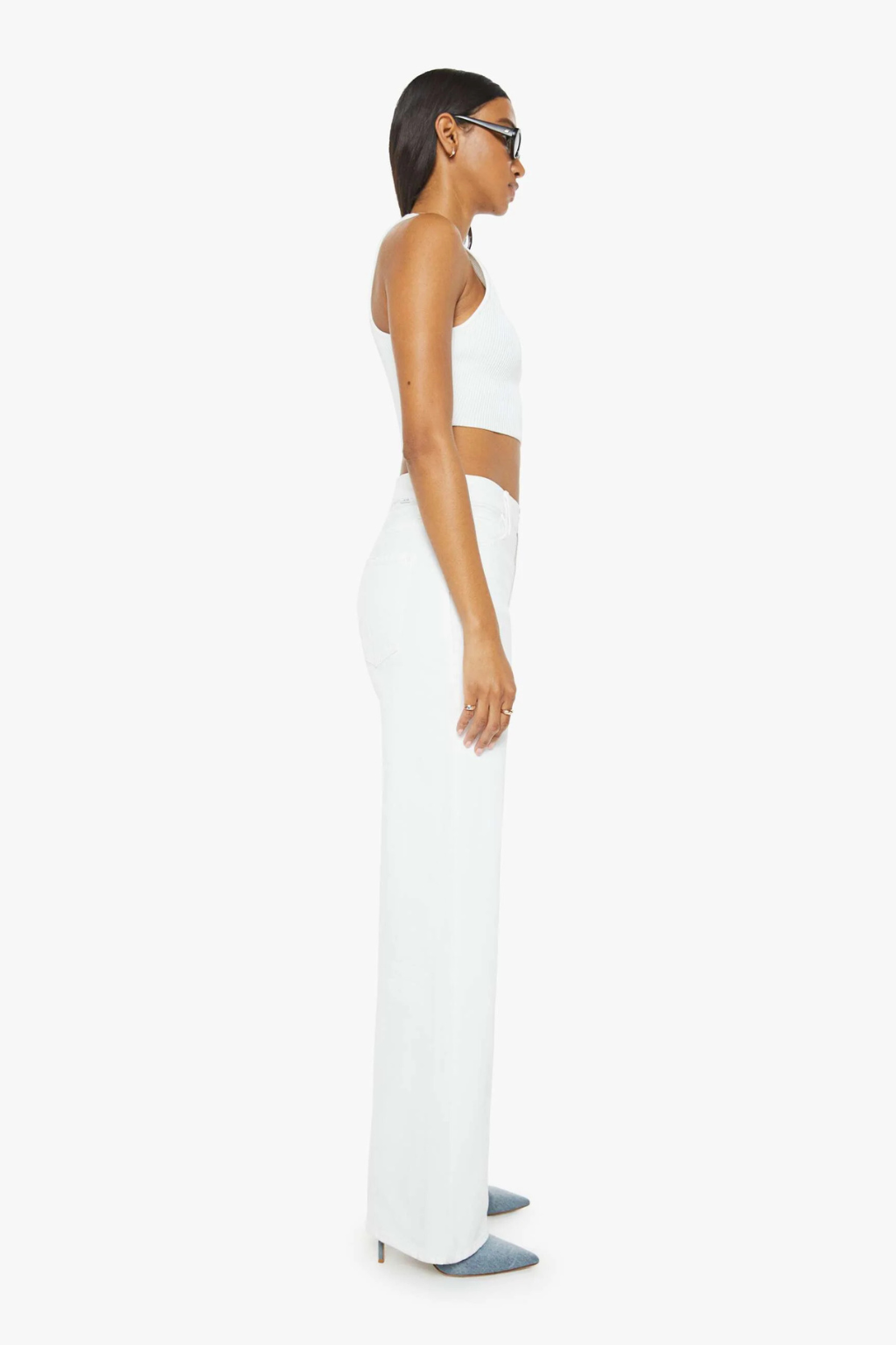 MOTHER's in the clear. Designed to sit on the hips with a slouchy fit, this loose straight leg has a 32-inch inseam with a clean hem. Cut from semi-rigid SUPERIOR denim, Totally Innocent is a classic white with tonal hardware.