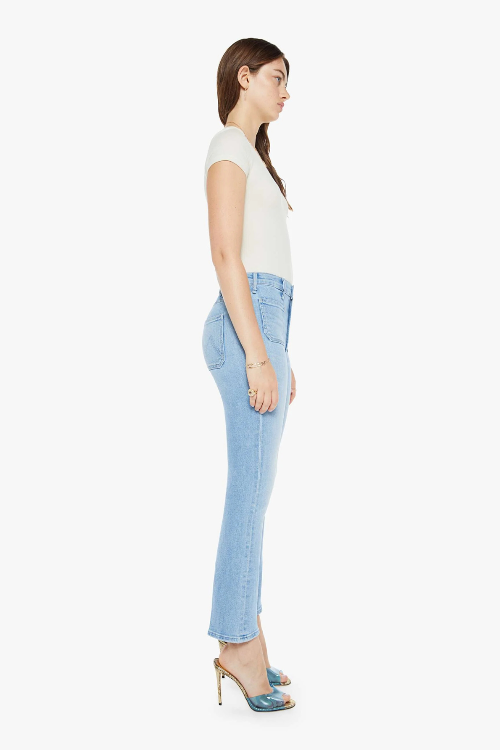 Ride the airwaves. This high-rise flare is designed with patch pockets, an ankle-length inseam and a clean hem. Made from stretch denim, Tune In, Tune Out is a light blue with subtle whiskering and fading throughout.