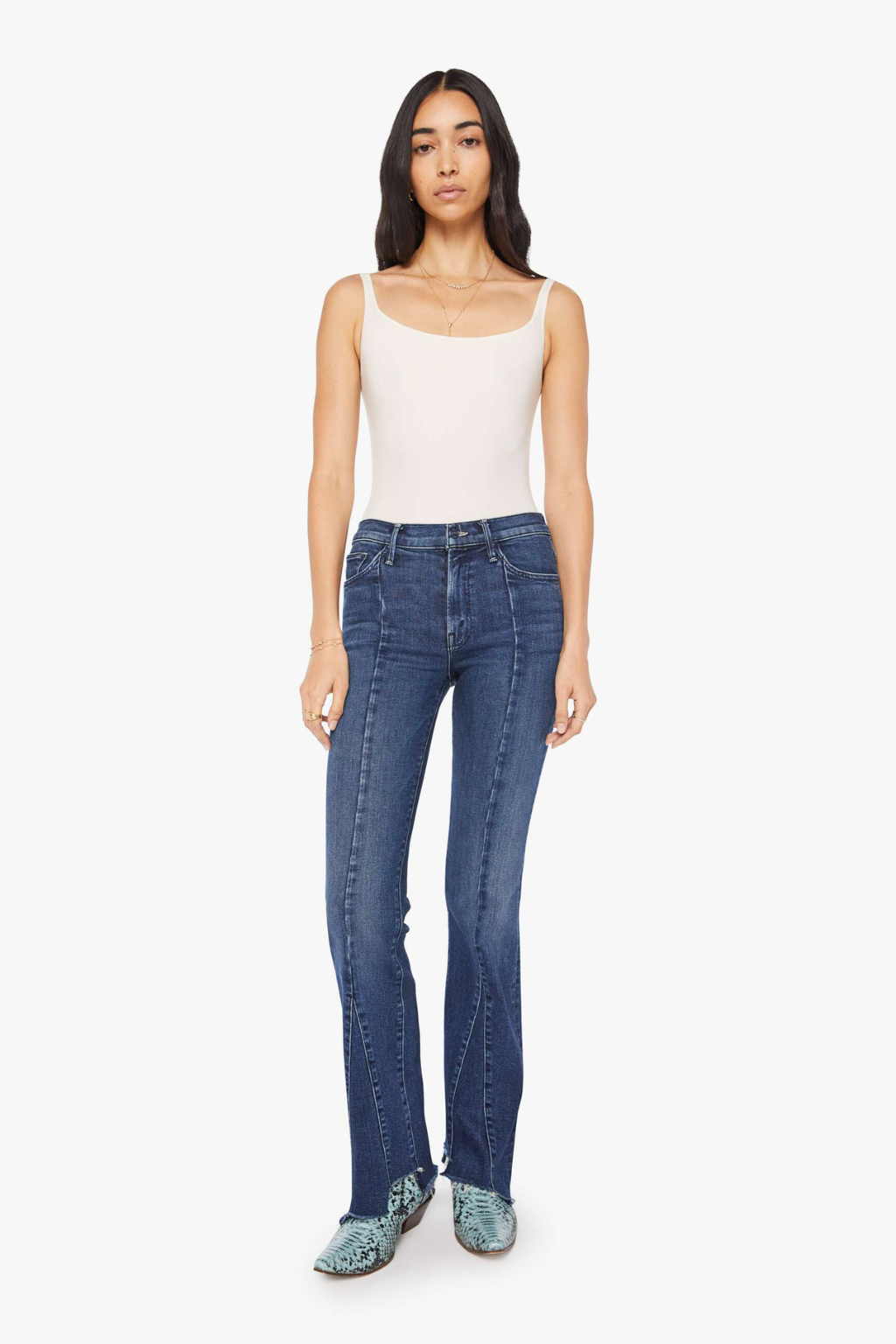 This iconic high-waisted bootcut features seamed details down the front that splits below the knee to form a slight flare.