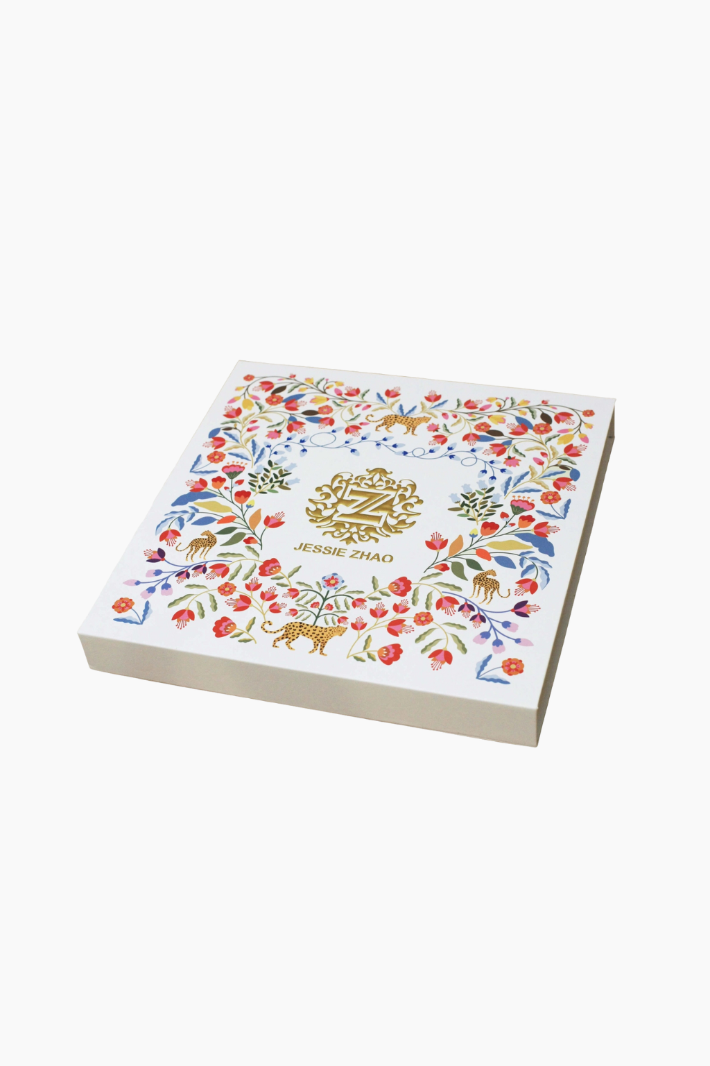 “Twin Leopards” celebrates strength and elegance through bold, hand-illustrated motifs of two majestic leopards poised against a rhythmic field of dotted patterns. The striking composition blends playfulness with power, evoking a contemporary yet timeless sense of style. Featuring a different color palette on each side, it offers a versatile and dynamic look from every angle. Crafted with exceptional attention to detail, the scarf also boasts hand-rolled edges, a luxurious finish, and comes in premium gift packaging.