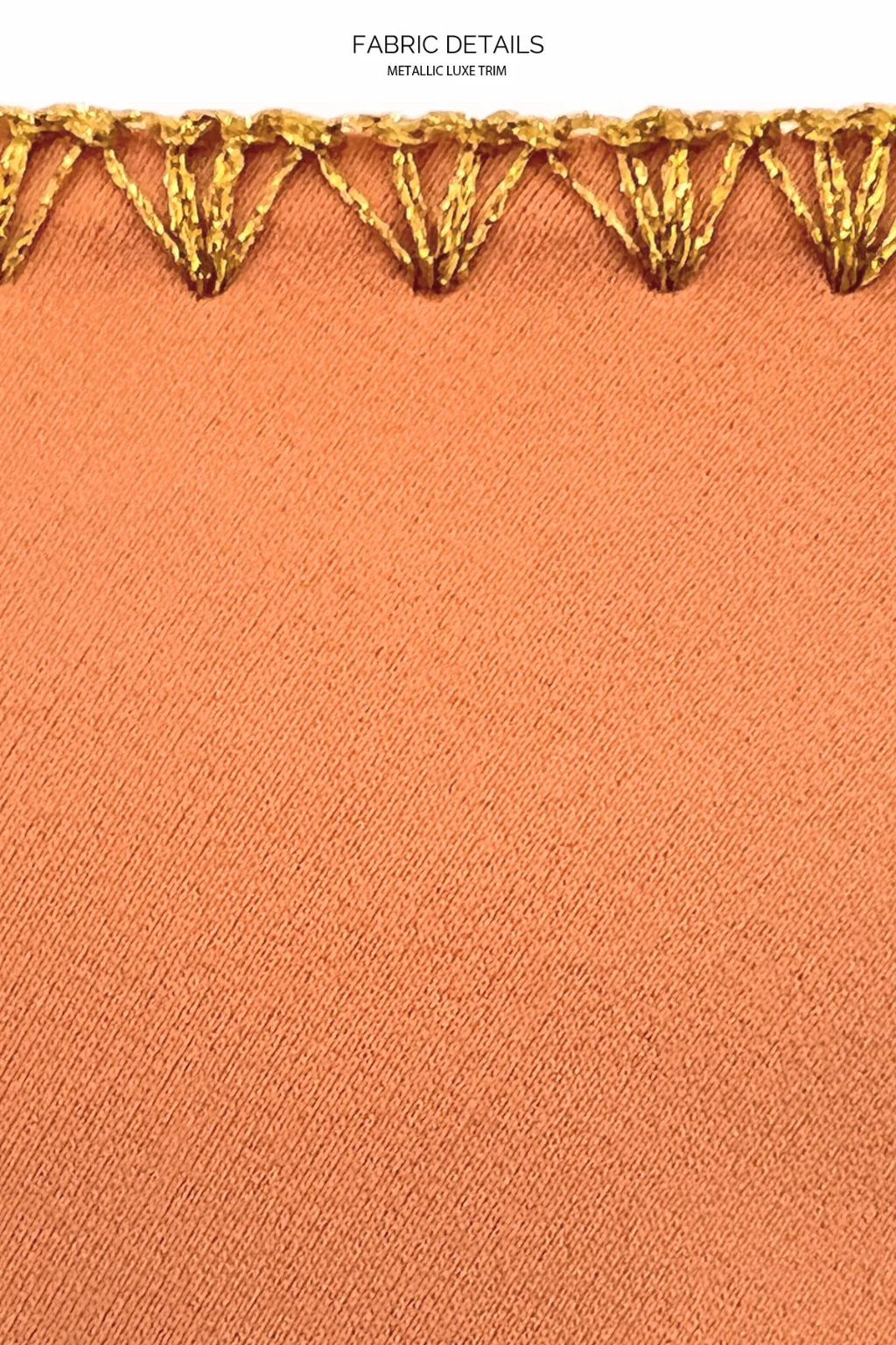 A deep v-neck one piece with criss cross ties in back for an adjustable comfortable fit. With a high leg and medium back coverage for maximum impact. String ties completed with signature Luli rings and edges feature delicate gold crochet stitching. Can also be worn as a bodysuit.