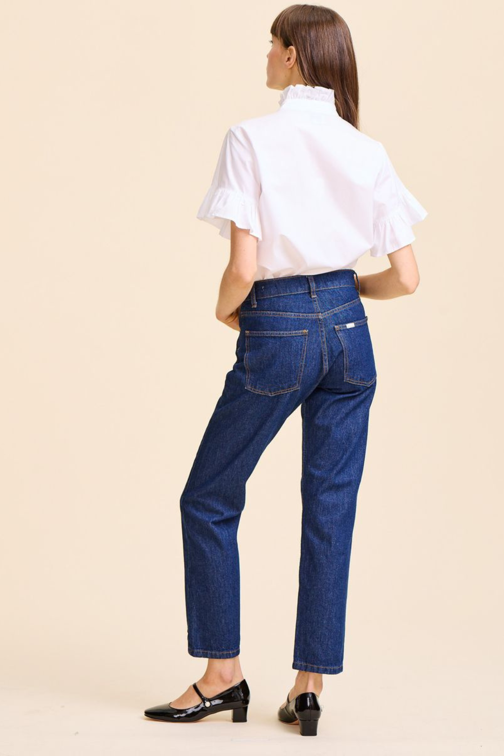 The Vanessa Top will be your new favorite everyday shirt. features a delicate ruffle neckline detail and a full sleeve. It's a button down style with a voluminous body designed for tucking. Easy to dress up or down.