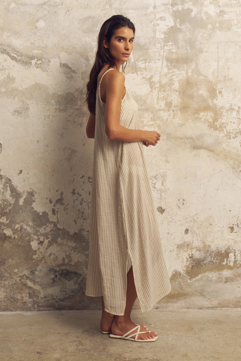 One of The Handloom's top selling styles, the Yaz dress is crafted in breathable lightweight material that defines easy-breezy summer dressing. “Yaz” means summer in Turkish, and the spirit of summer is captured in this stylish maxi silhouette. Understated, yet luxurious details include daring side slits and adjustable straps for customized wear. Includes woven belt (not pictured).